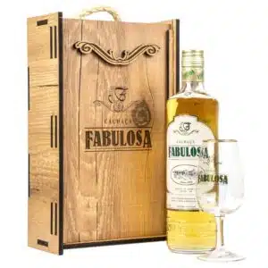 Feito em MDF nobre com gravação a laser da marca Fabulosa, o estojo traz uma garrafa de 700 ml da Cachaça Fabulosa Tradicional (Bálsamo, 6 anos) e uma taça ISO personalizada, ideal para quem aprecia degustar a cachaça com todos os sentidos.